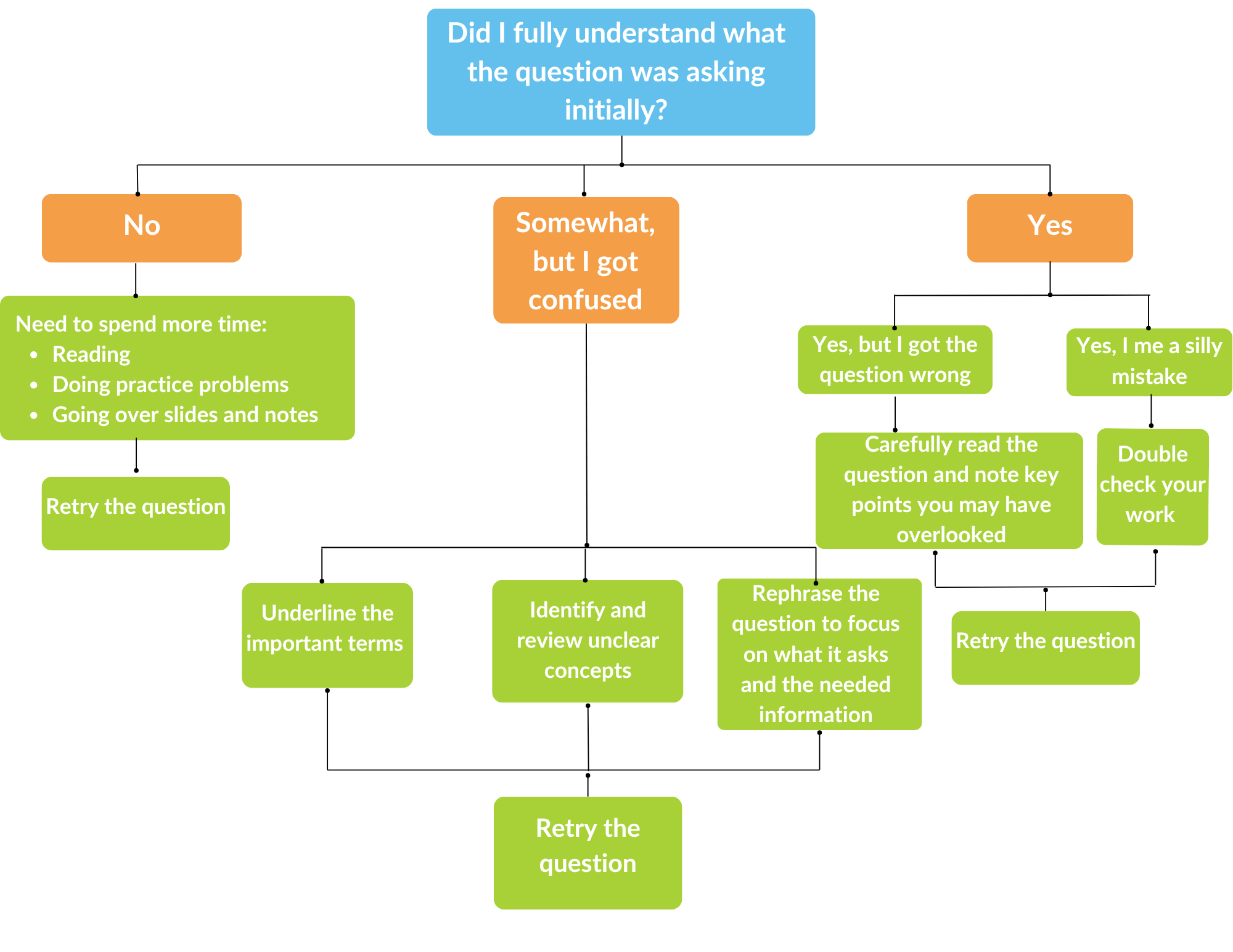 Review your answers to identify what you got right and where you made mistakes. Use this diagram to help you identify where/why you made mistakes on your test:
